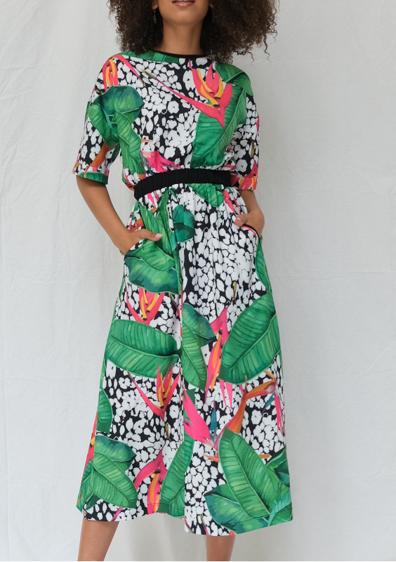 Kelia - Sukienka mini na jedno ramię w Różowe Kwiaty
