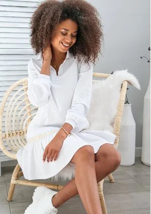 Stefania - Sportowa sukienka z kołnierzykiem Biała