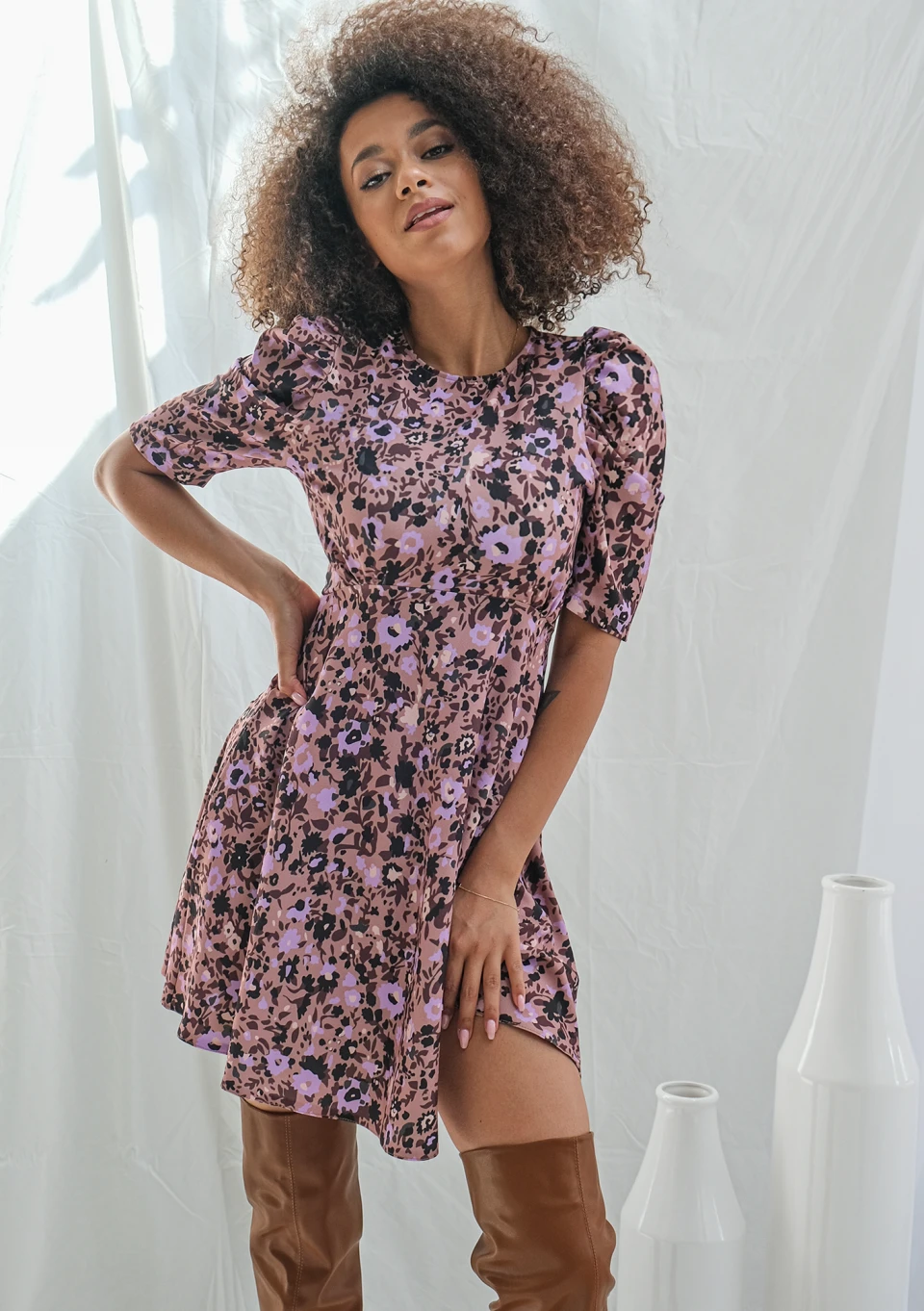 Rosie - Rozkloszowana sukienka z kołnierzykiem Roses