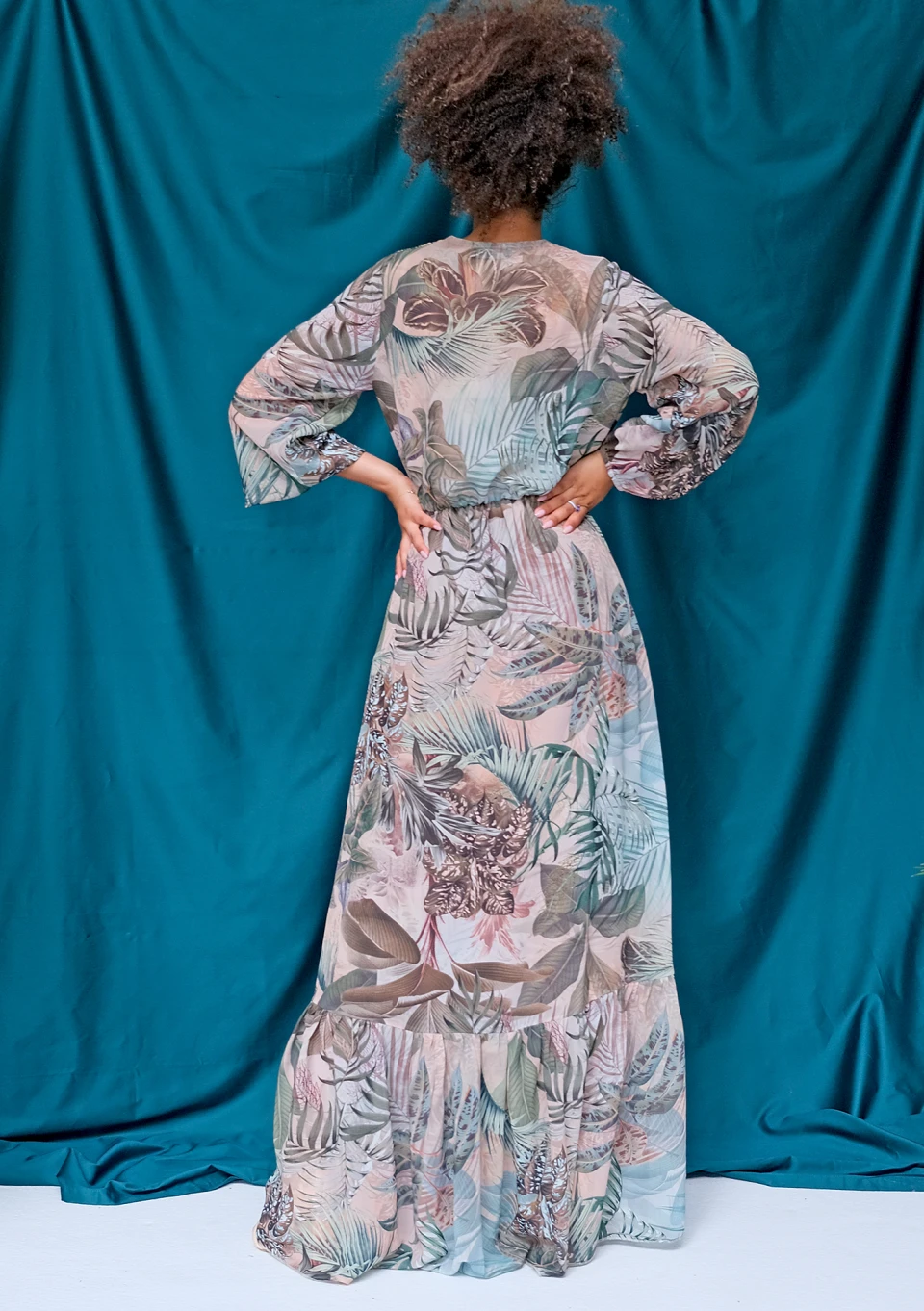 Mayell - Sukienka maxi z kopertowym dekoltem i efektownym drapowaniem Deep Brown