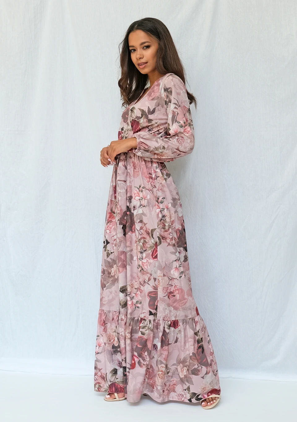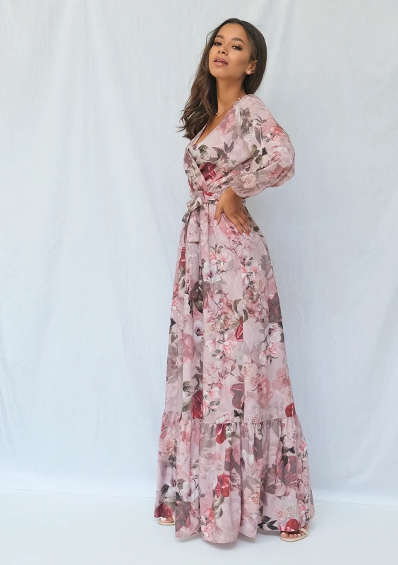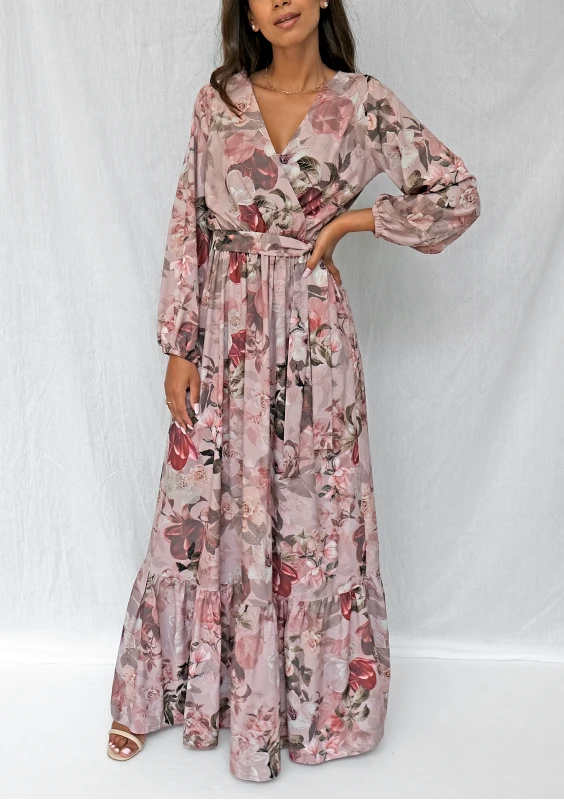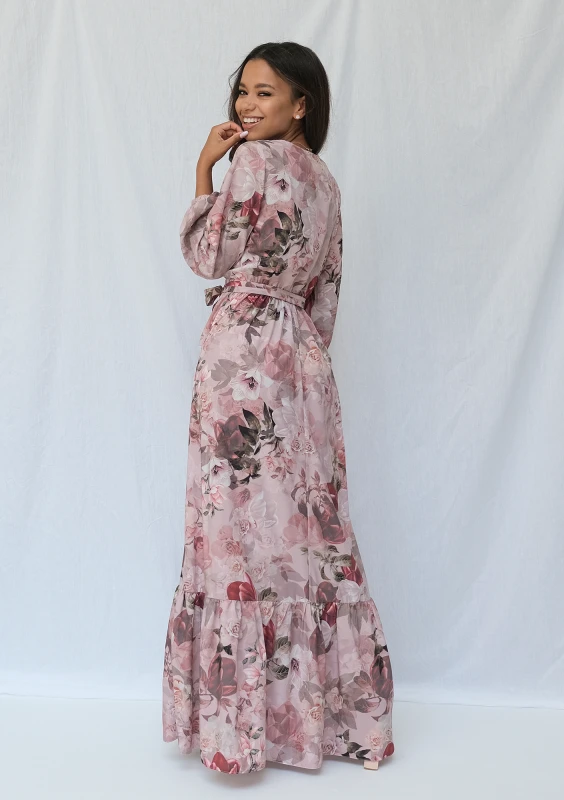 Florea - Kopertowa sukienka maxi Beżowa