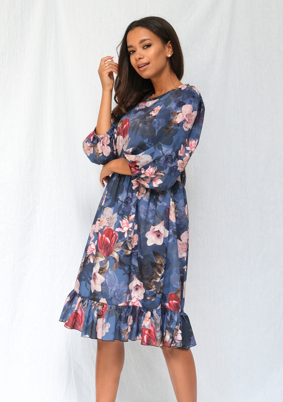 Katie - Sukienka bombka mini w Niebieskie Kwiaty