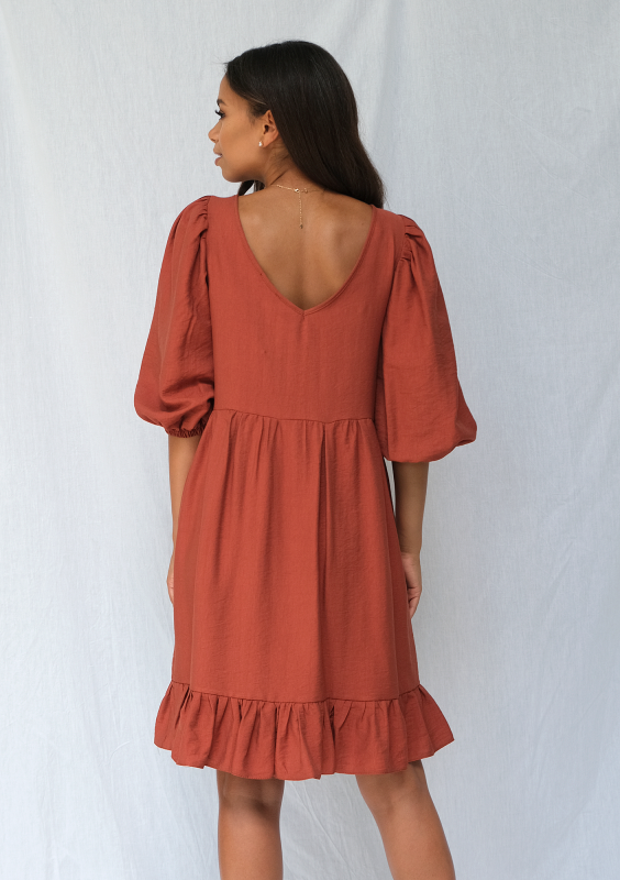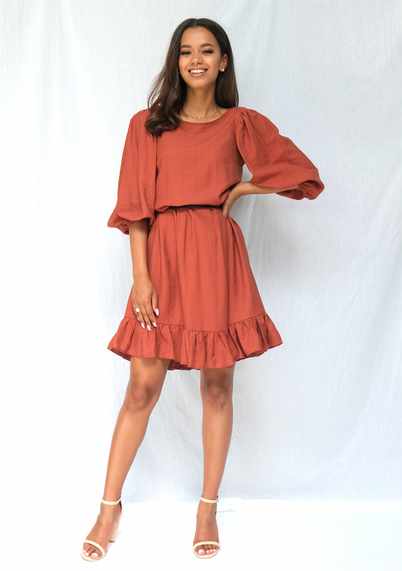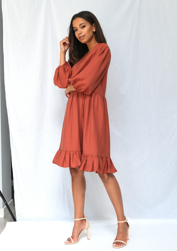 Liliane - Muślinowa sukienka midi z wiązaniem Brown