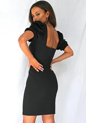 Dopasowana sukienka z krótkimi bufiastym rękawami czarna