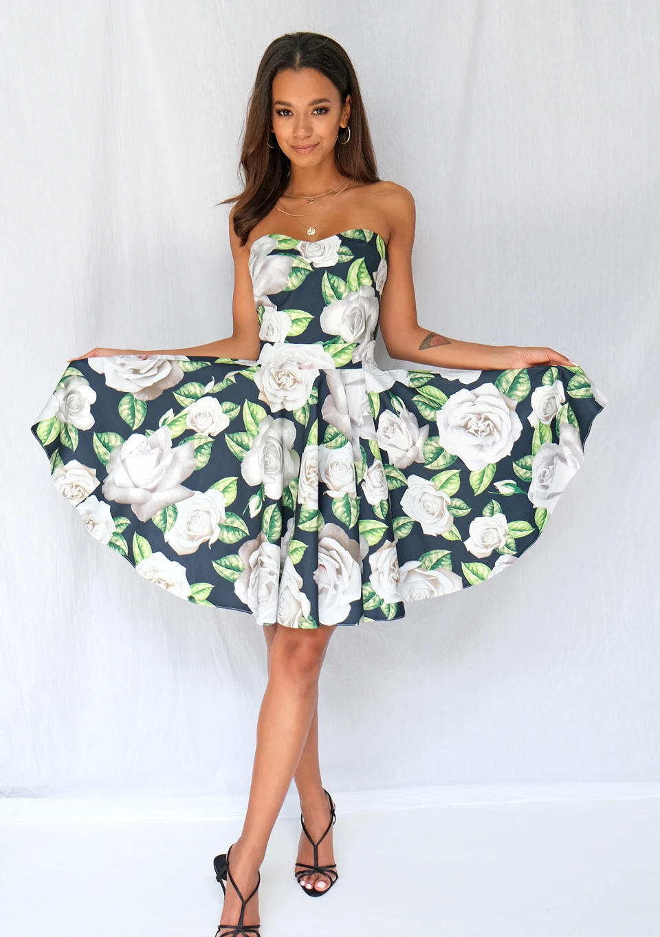 Grace - Rozkloszowana sukienka midi z modelującymi przeszyciami Brązowa