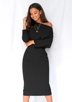 Sukienka midi z dekoltem w łódkę czarna