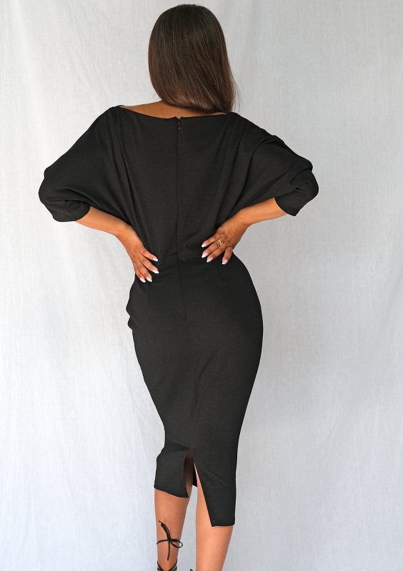 Solene - Dopasowana sukienka midi z wiązaniem na boku Czarna