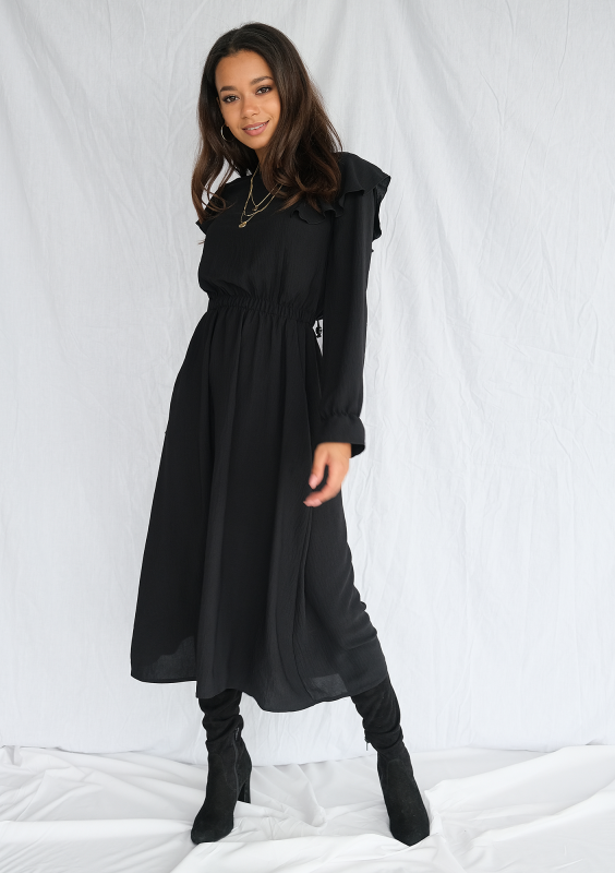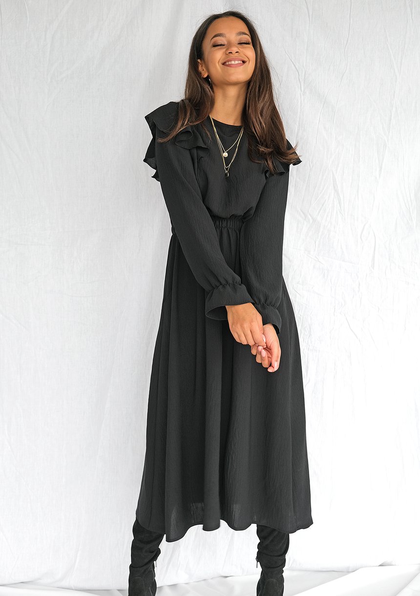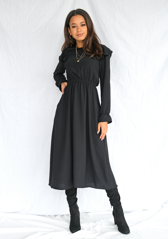 Sukienka midi z falbanami Czarna
