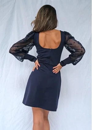 Sukienka z rękawem w gwiazdki Granatowa