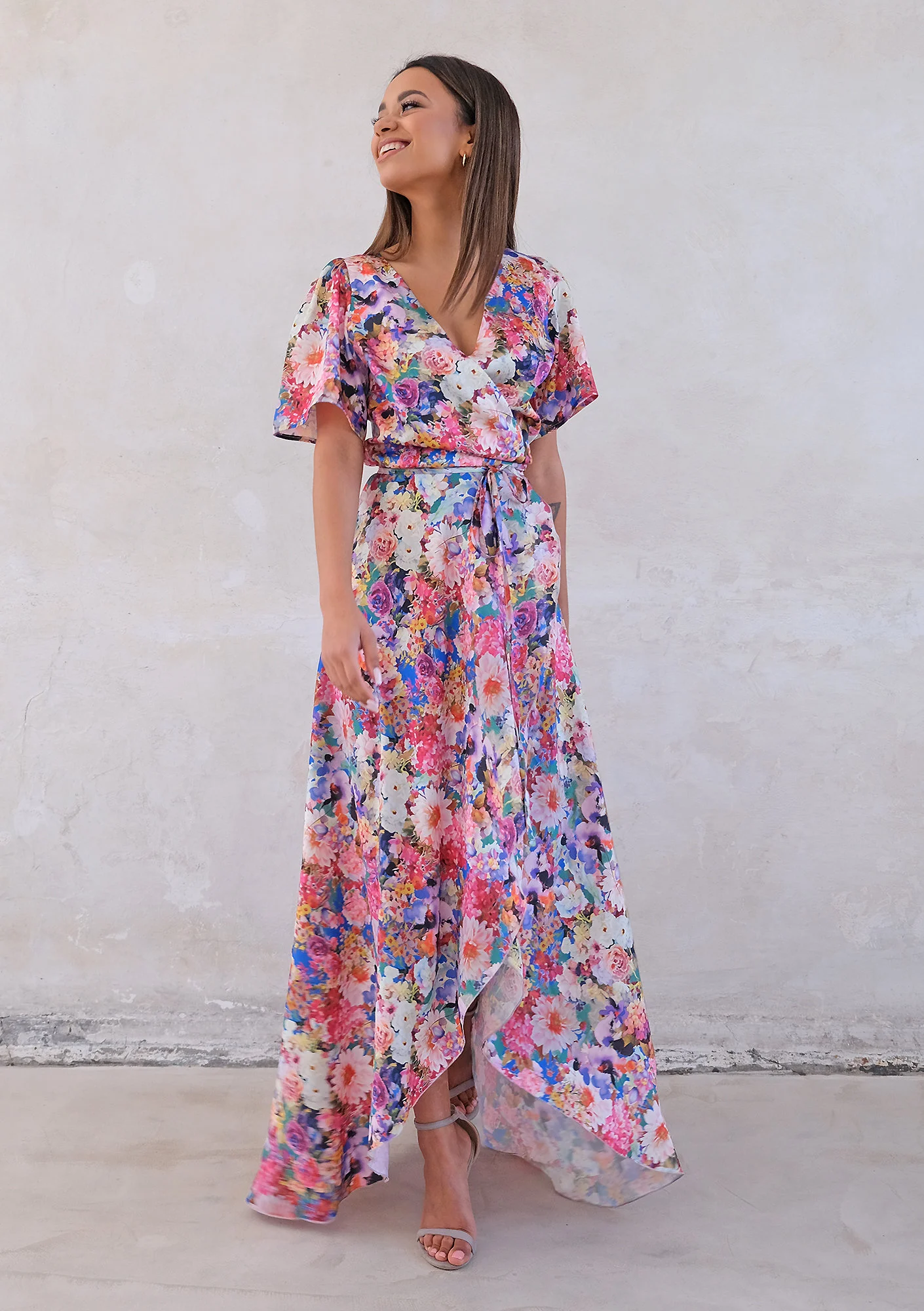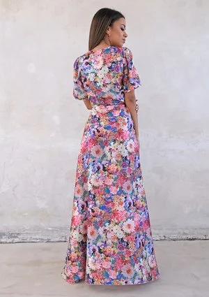 Carole - Kopertowa sukienka z asymetrią w Kwiaty