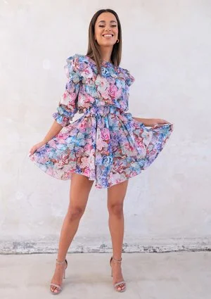 Zgłoś nielegalną treśćKwiecisty wzór stanowi idealną propozycję na wiosenno – letnią porę. Wybierając mini sukienkę w żywych kolorach roztoczysz wokół siebie aurę elegancji w bardzo lekkim, świeżym wydaniu. Prezentowany model sukienki w kwiaty inspirowany jest naturą i akwarelowymi dziełami sztuki. Deseń malowanych kwiatów jest tu niezwykle bogaty i różnorodny, a główne tonacje kolorów wpadają w błękit, fiolet oraz róż. Sukienka niewątpliwie przyciągnie mnóstwo spojrzeń zachwytu oraz zrobi piorunujący efekt, a to za sprawą pięknych zdobień fasonu. Liczne, zwiewne falbany oraz podkreślone, kobiece wcięcie w talii wyznaczają zmysłowy, eteryczny styl sukienki.