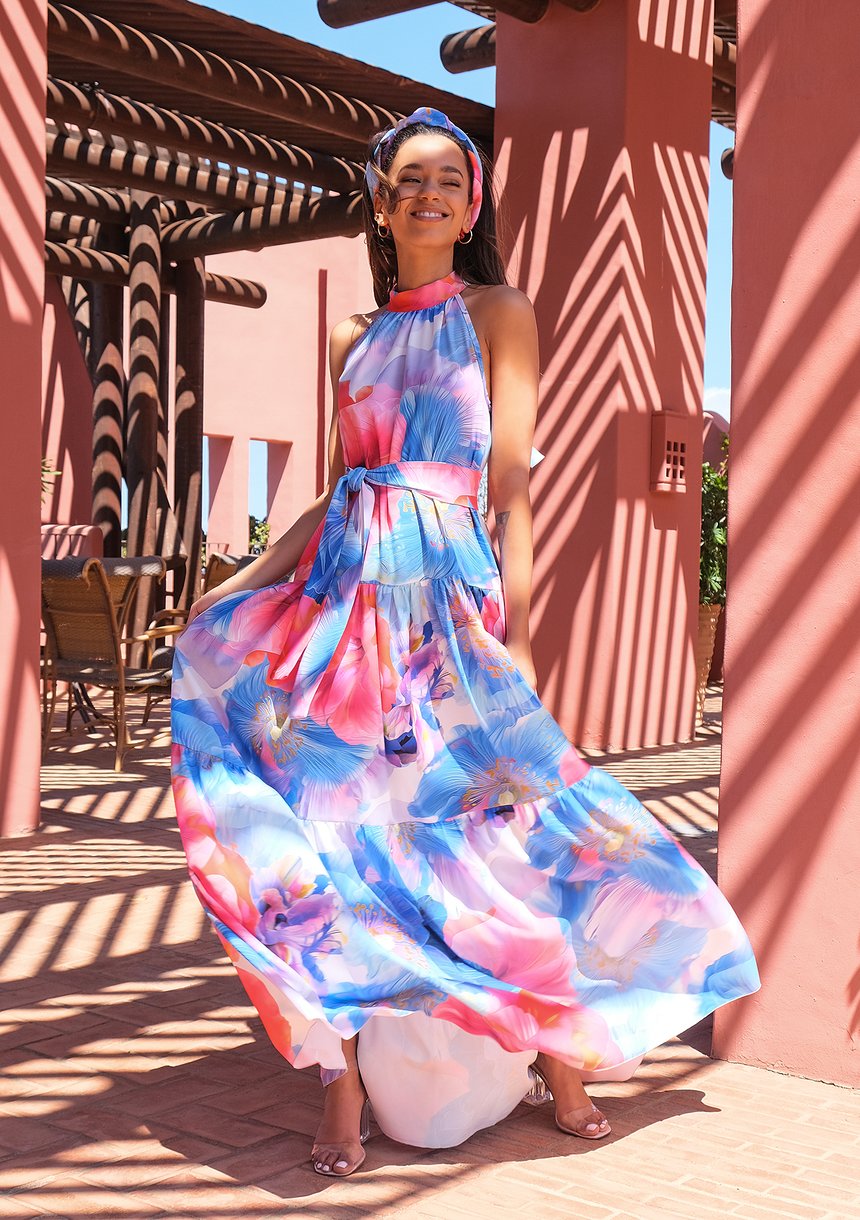 Liliane - Muślinowa sukienka midi z wiązaniem Brown