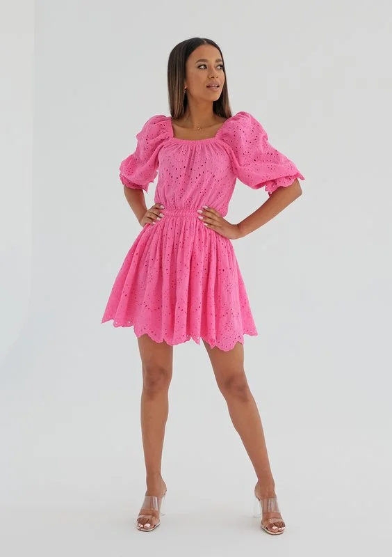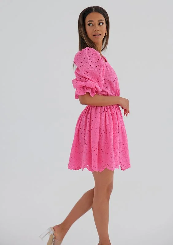 Jovite - Sukienka ażurowa z popeliny Różowa