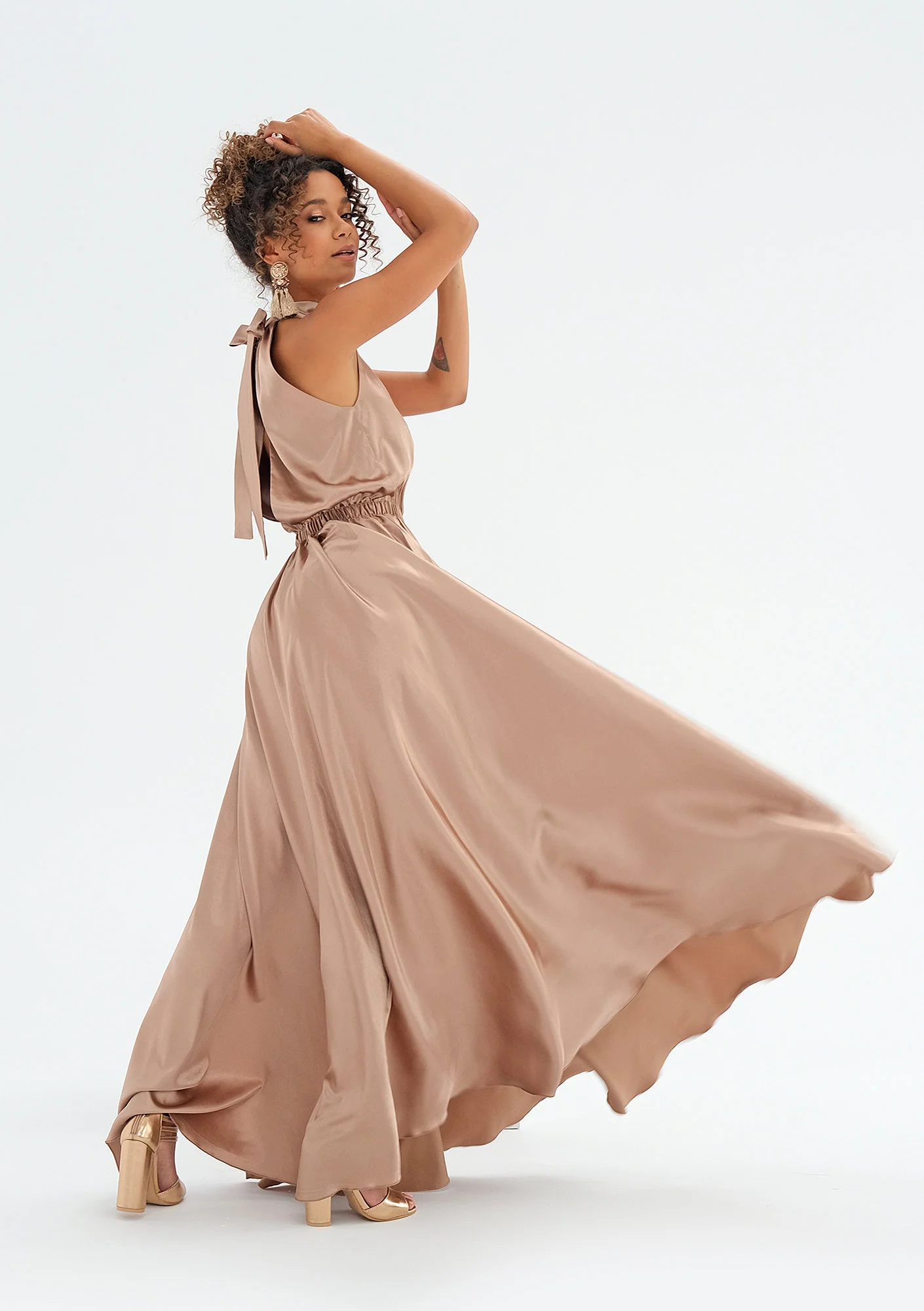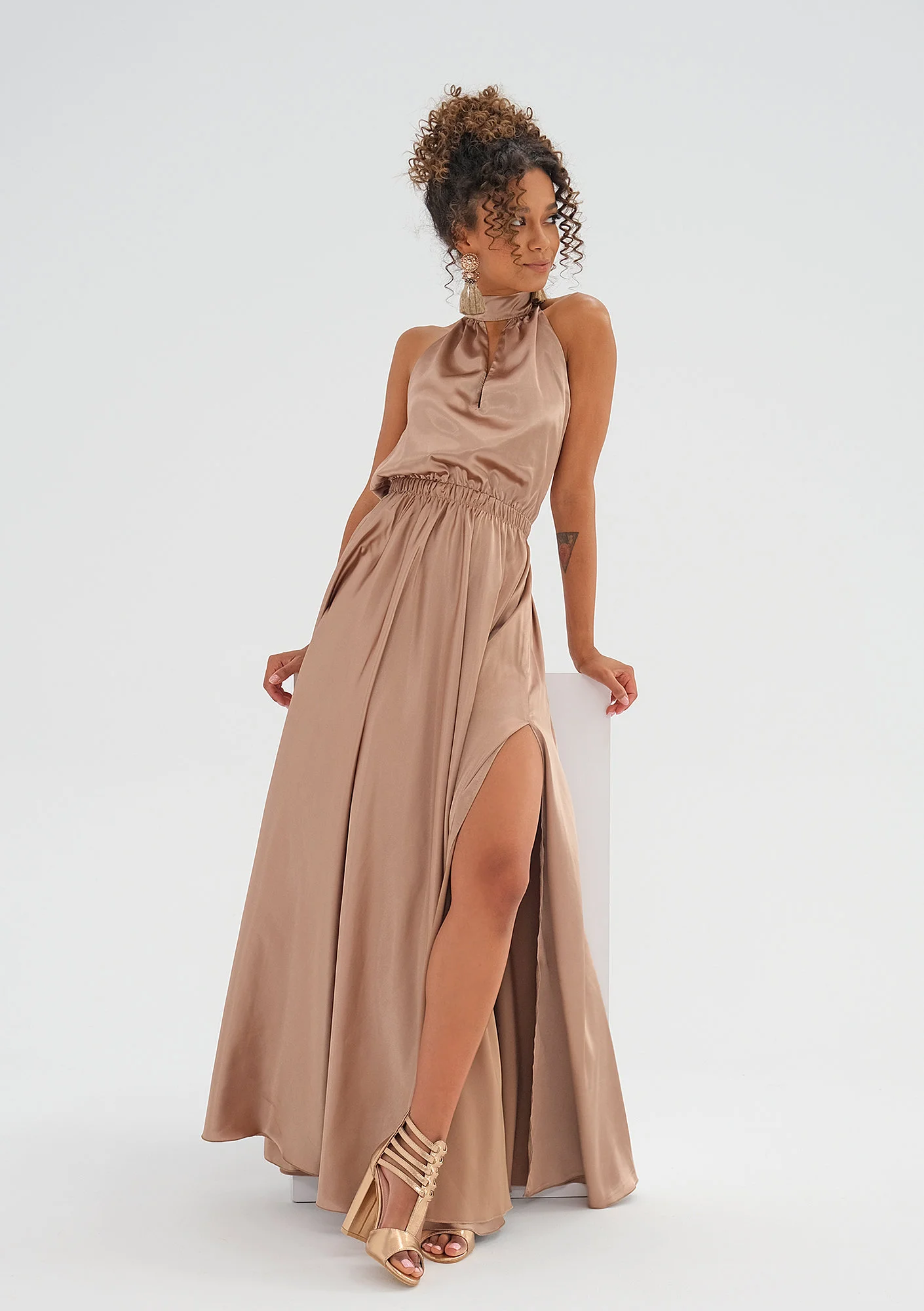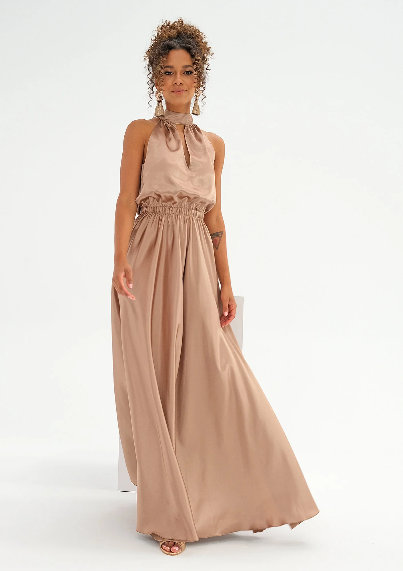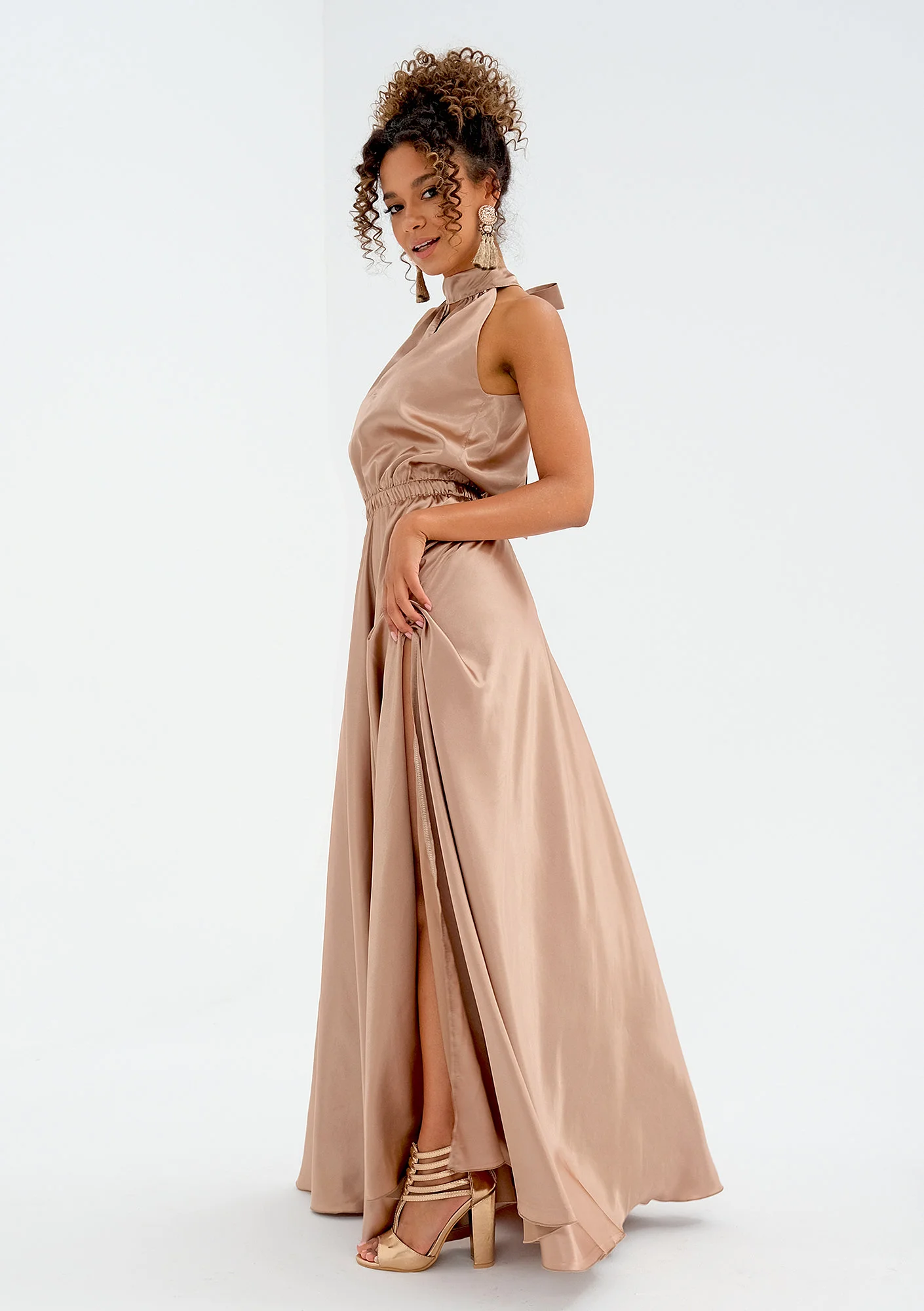Karine - Sukienka z satyny z wiązaniem na szyi Beżowa