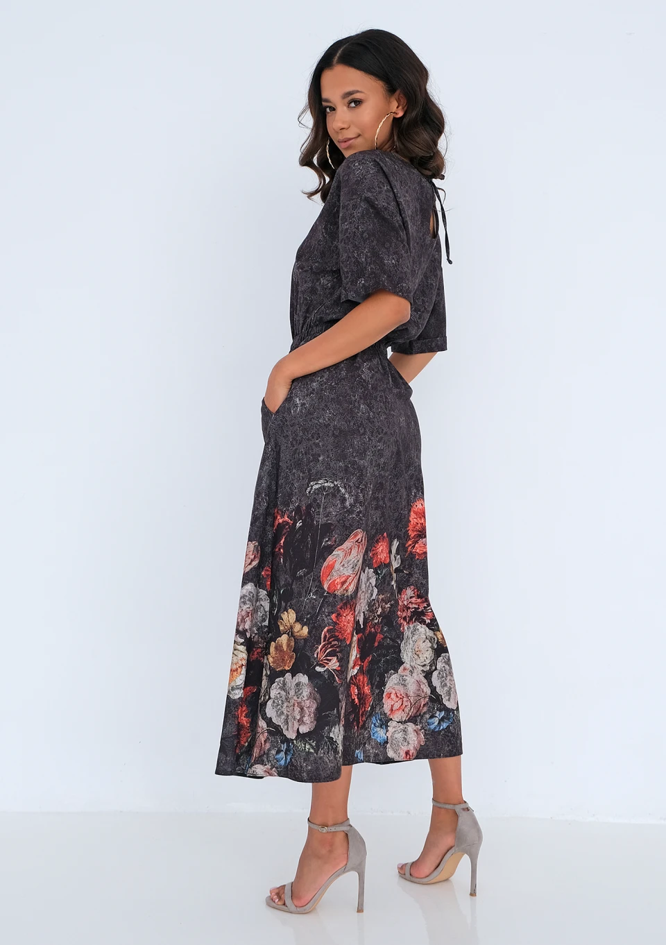 Mirelle - Sukienka midi z kołnierzykiem i dekoltem ,,V" Brązowa