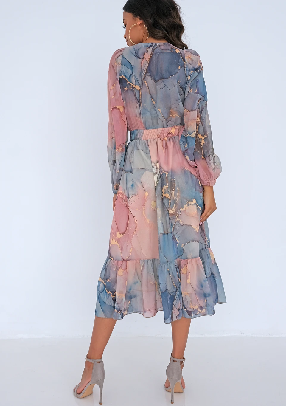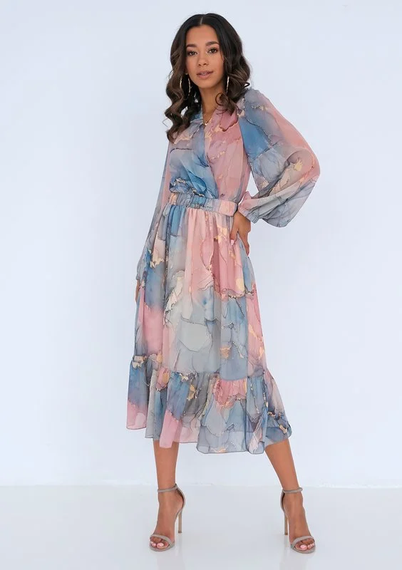 Odette - Sukienka midi z szyfonu Pink Marble