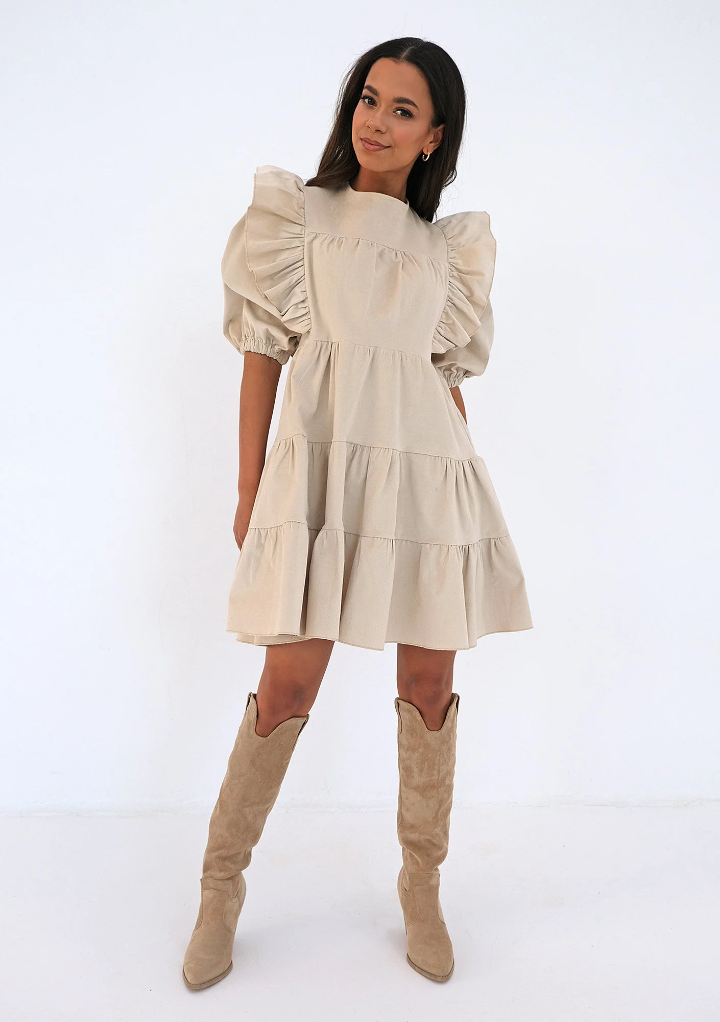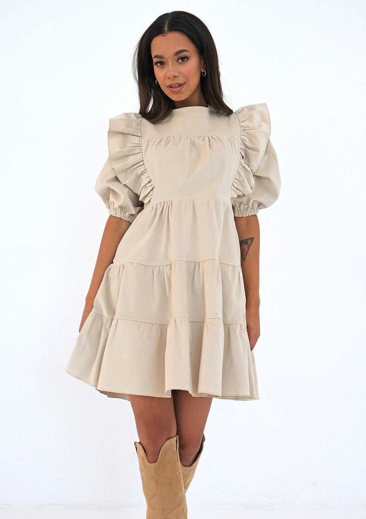 Adaline - Sztruksowa sukienka z falbankami Beżowa