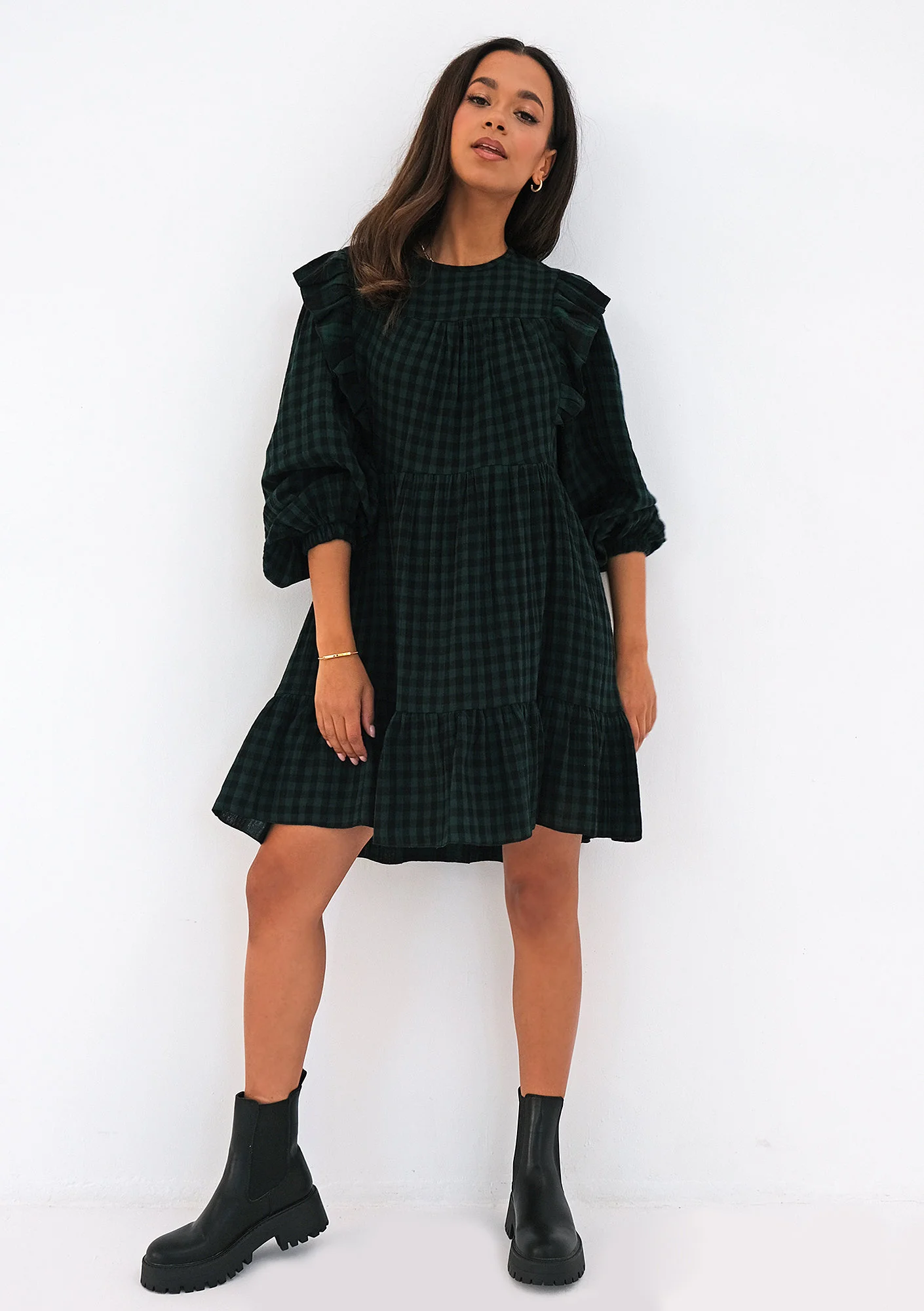 Beatrice - bawełniana sukienka w kratkę Zielona
