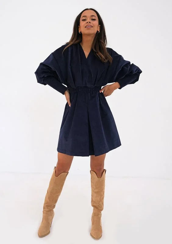 Amanda - Kopertowa sukienka ze sztruksu Granatowa