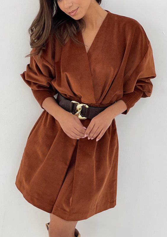 Amanda - Kopertowa sukienka ze sztruksu Karmelowa