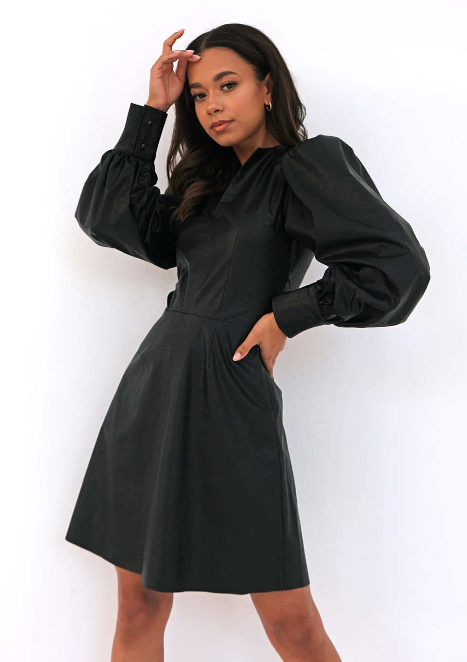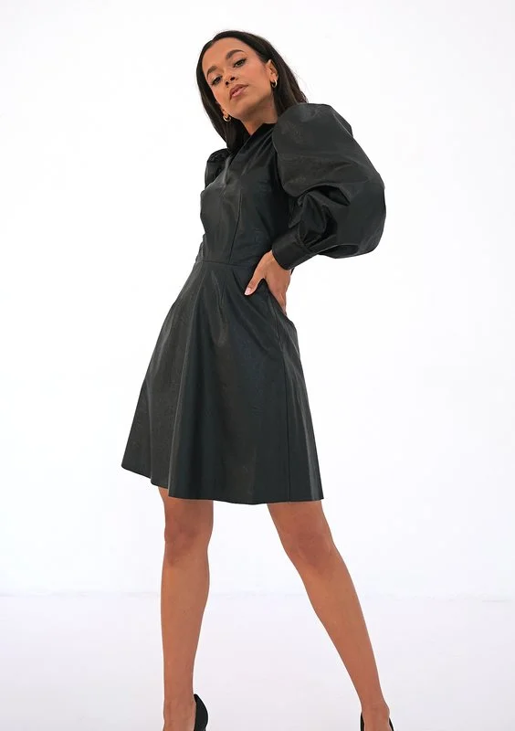 Czarna sukienka skórzana, wykonana z doskonałej imitacji. Elegancki model, dzięki któremu nie tylko podkreślisz sylwetkę, ale i zaprezentujesz się niepowtarzalnie i z charakterem.