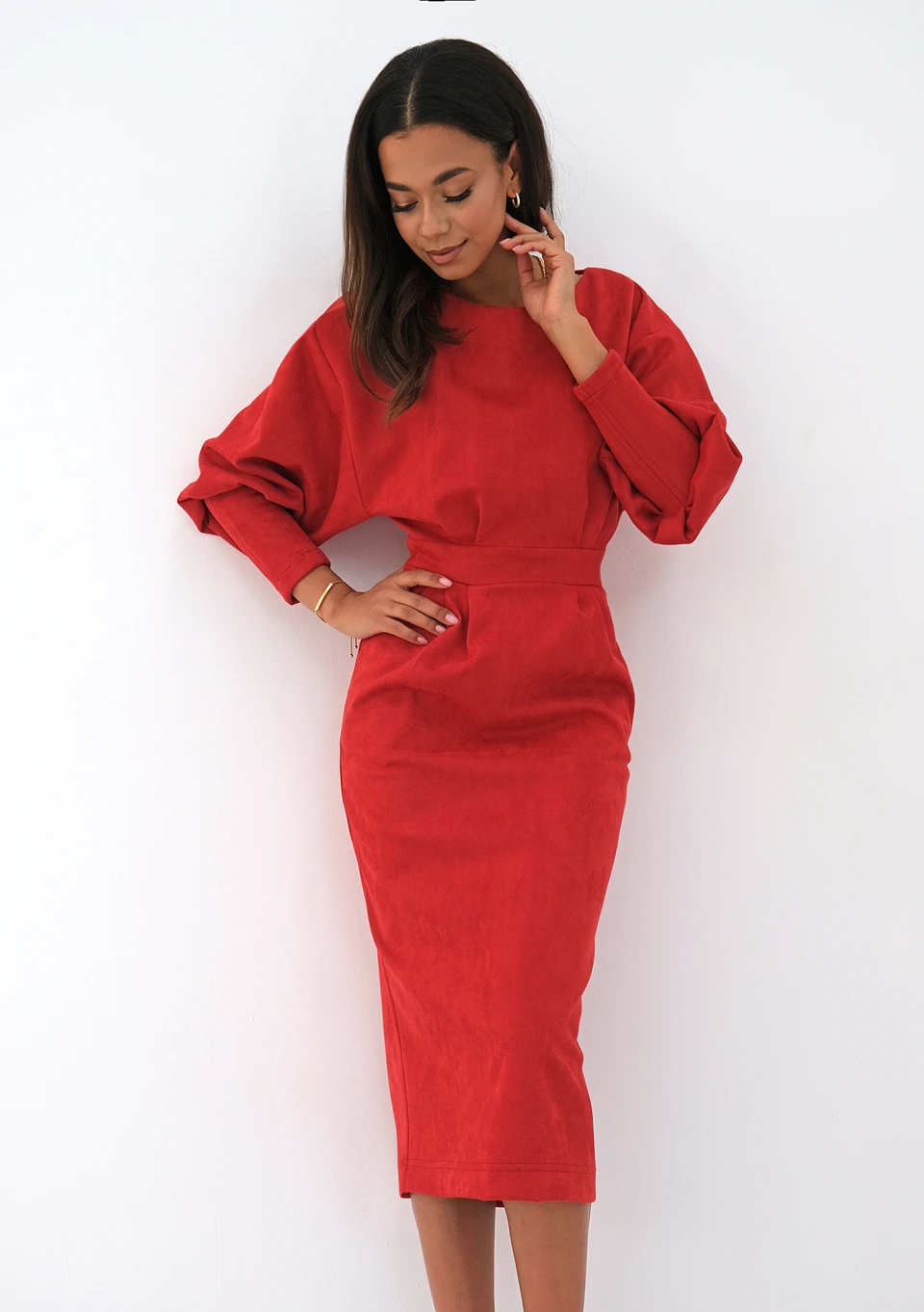 Agnese - Sukienka za kolano z imitacji zamszu Czerwona