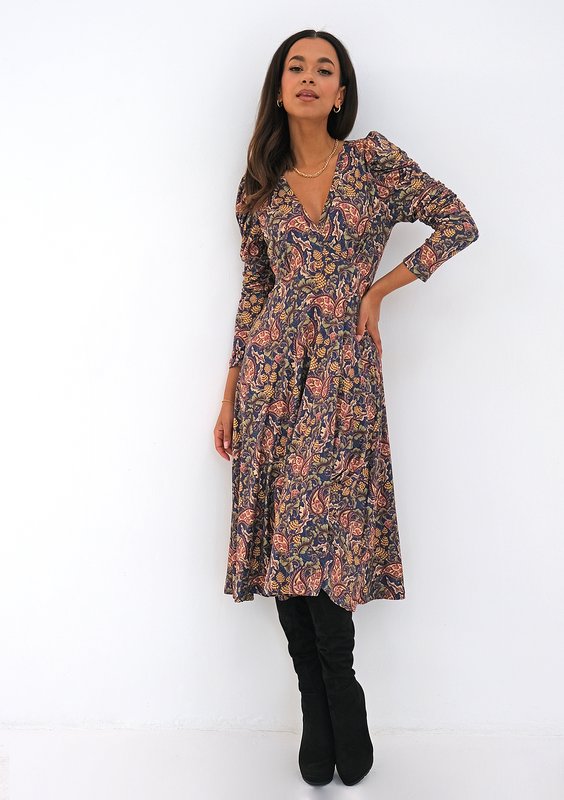 Vittoria - Kopertowa sukienka z dzianiny soft Paisley