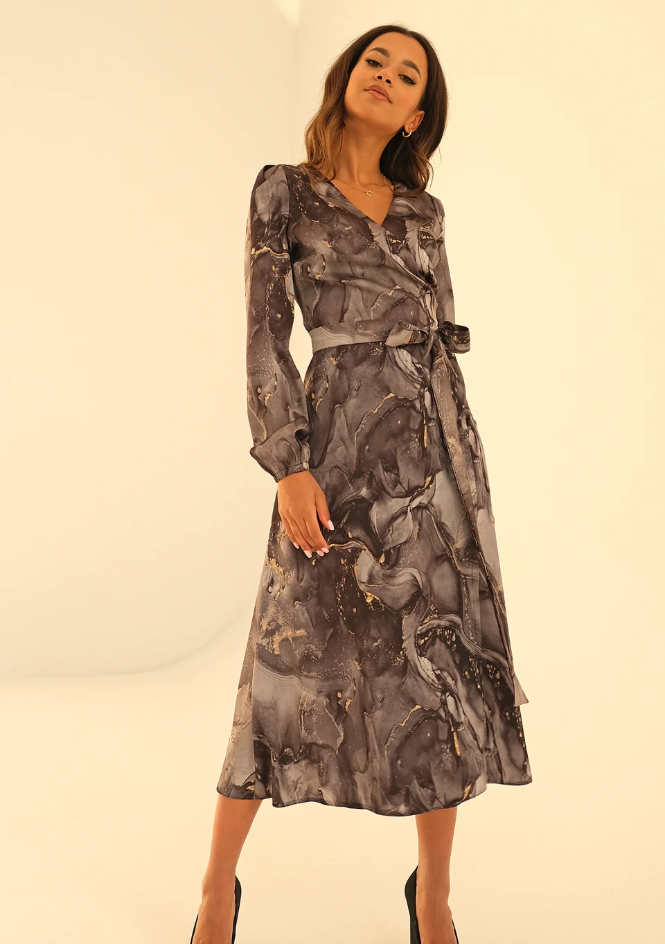 Alicia - Kopertowa sukienka midi Dark Marble