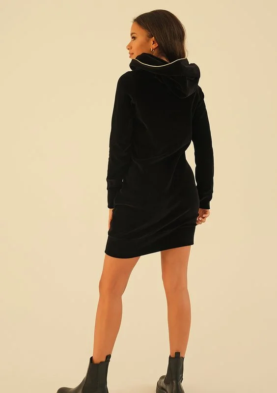 Sportowa sukienka dresowa o długości mini, która zapewni Ci świetny styl i pełną wygodę. Przyjemnie otuli sylwetkę welurową dzianiną o cudnym połysku. Ozdobiona stylowymi, złotymi detalami.