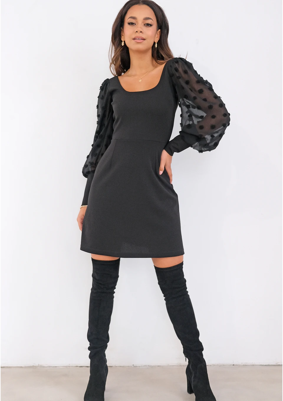 Nadine - Sukienka z szyfonowym rękawem Czarna