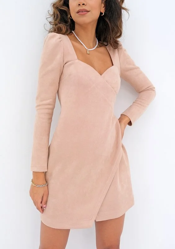 Kleo - Sukienka mini z imitacji zamszu Nude