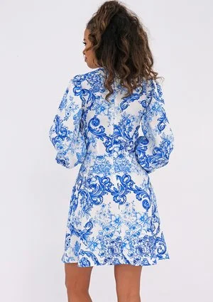 Zgłoś nielegalną treśćTa wyjątkowa sukienka mini sprawi, że trudno będzie oderwać od Ciebie wzrok, za każdym razem przy jakiejkolwiek okazji się w niej zaprezentujesz. Jest nie tylko elegancka, ale i bardzo oryginalna pod kątem estetycznym, co zawdzięcza przede wszystkim kompozycji wzoru i duecie niebieskiego i bieli. To świeży, efektowny i nieco letni look. Camilla to koktajlowa sukienka na wesele, wiosenno – letnie przyjęcia i randki. To również idealna kreacja na uroczystą kolację, romantyczny spacer, ważne spotkanie zawodowe. Jej wszechstronność podkreślisz wieloma różnymi dodatkami. Będą do niej pasowały klasyczne, bardzo eleganckie dodatki i metaliczna biżuteria, jak i słomkowe, letnie akcesoria czy proste sandałki.