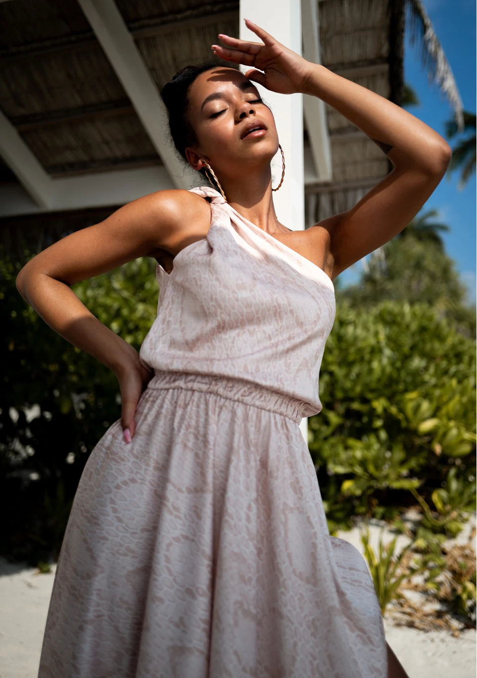 Grace - Asymetryczna sukienka maxi Snake Beige