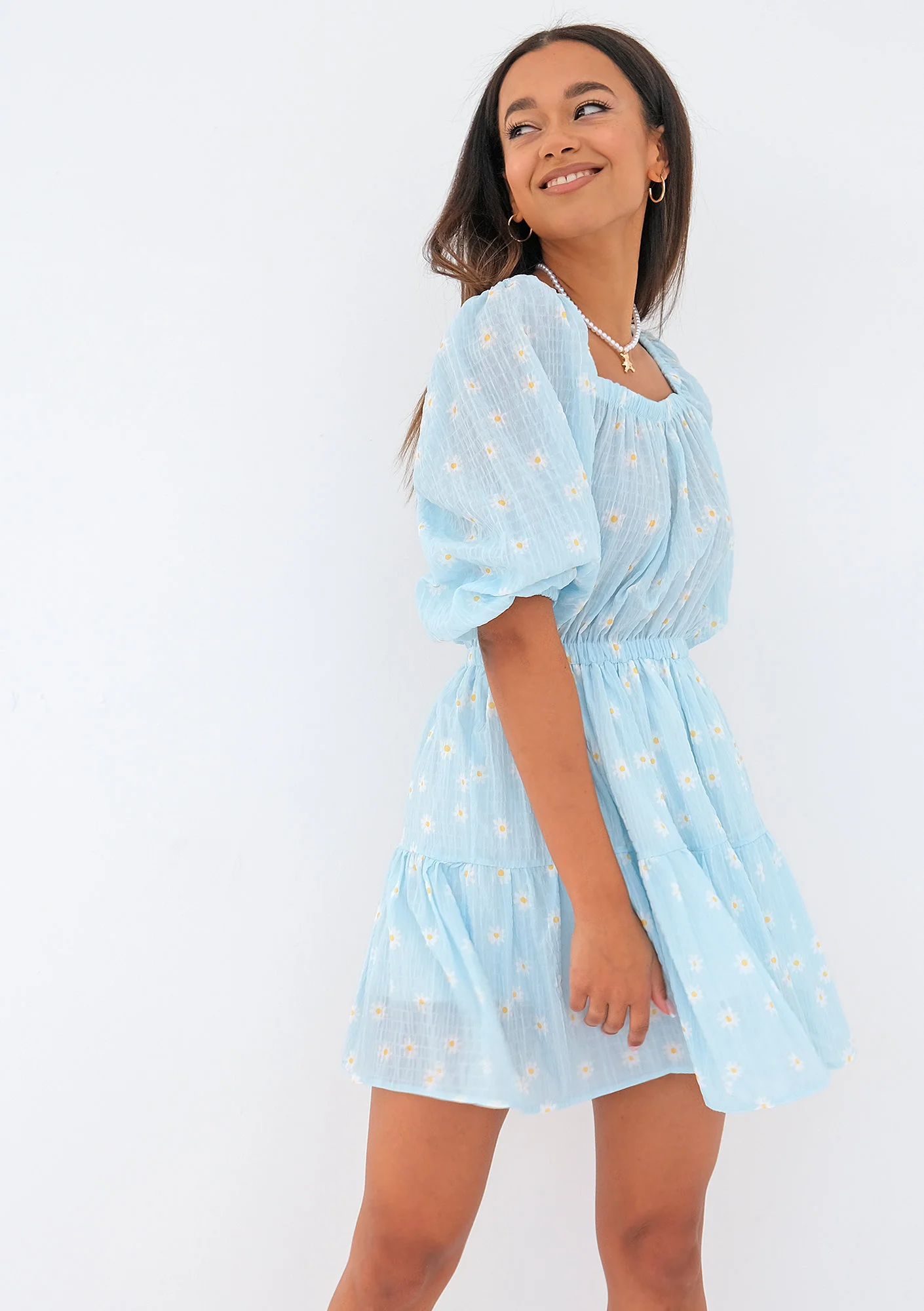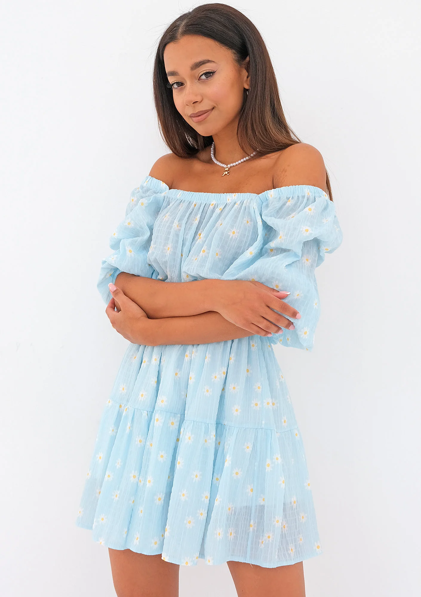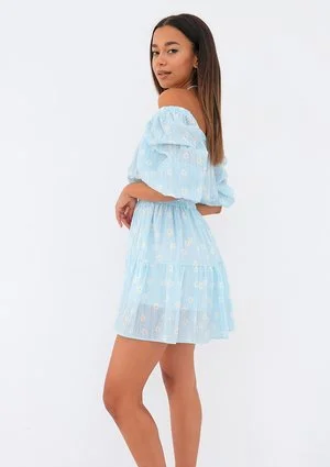 Zgłoś nielegalną treśćBłękitna sukienka mini w kwiatki w pełni podkreśli Twoją urodę w słoneczne dni. To fason idealny na letnie upały, bardzo wygodny, zwiewny i lekki. Maud zdobiona wzorem drobnych stokrotek jest wykonana z tkaniny o przewiewnym splocie, która zapewni Ci latem pełen komfort. To letnia sukienka boho, do której pasują każde dodatki: słomiany kapelusz, plecione espadryle, subtelne ozdoby z muszelek, jak i klasyczna, srebrna lub złota biżuteria.