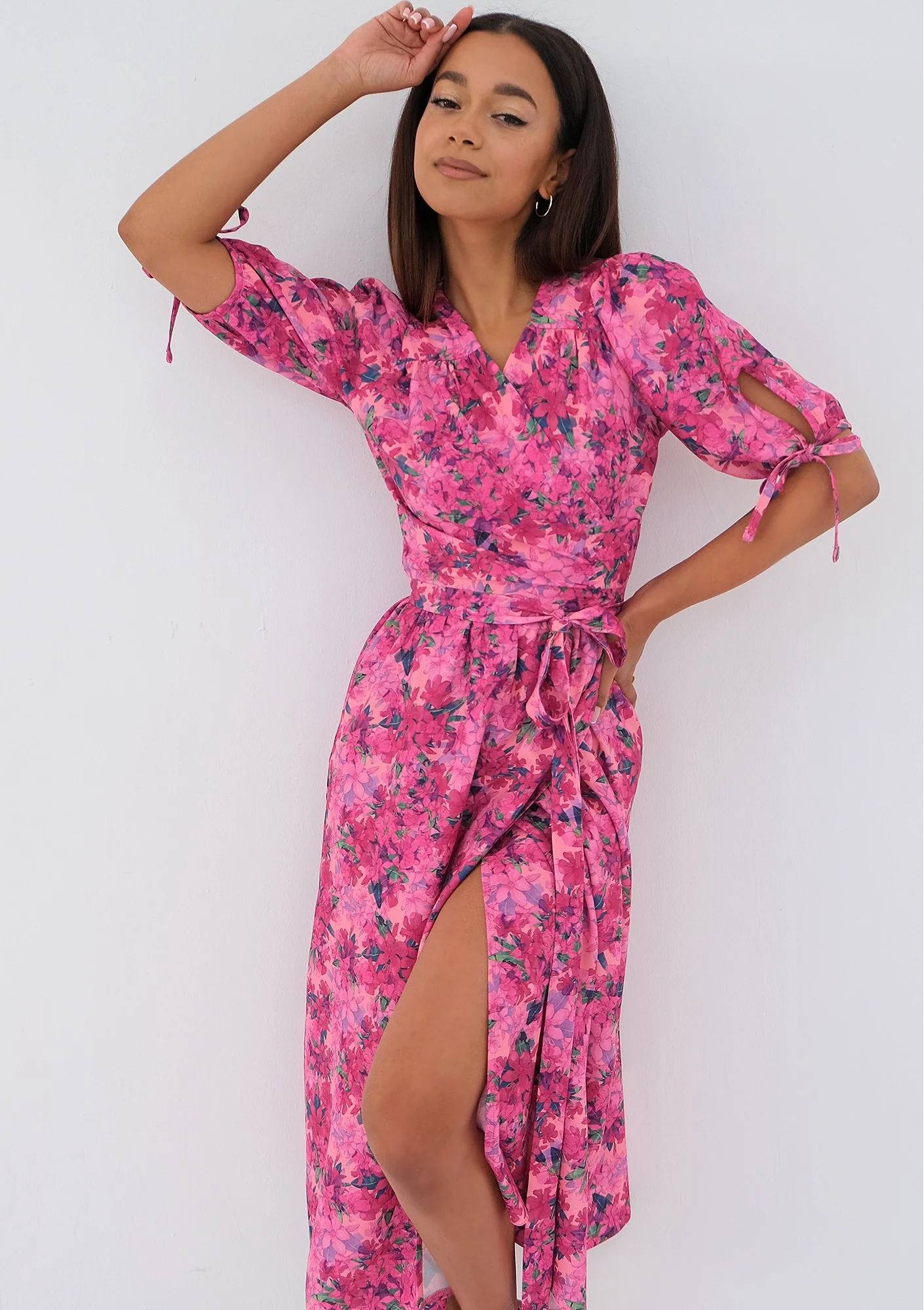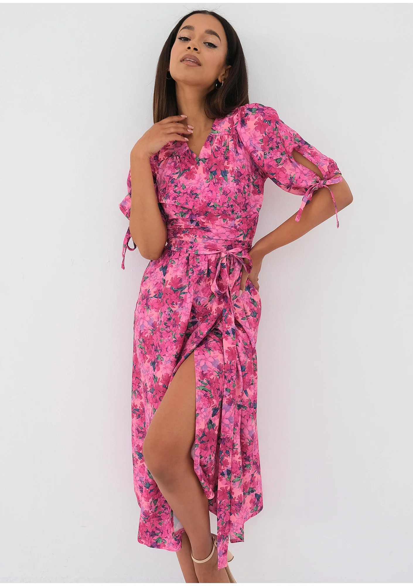 Milly - Kopertowa sukienka w kwiatki Pink