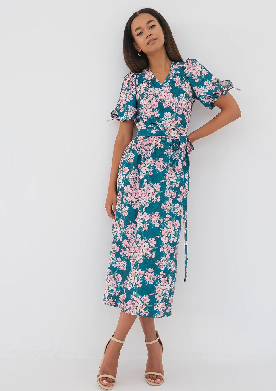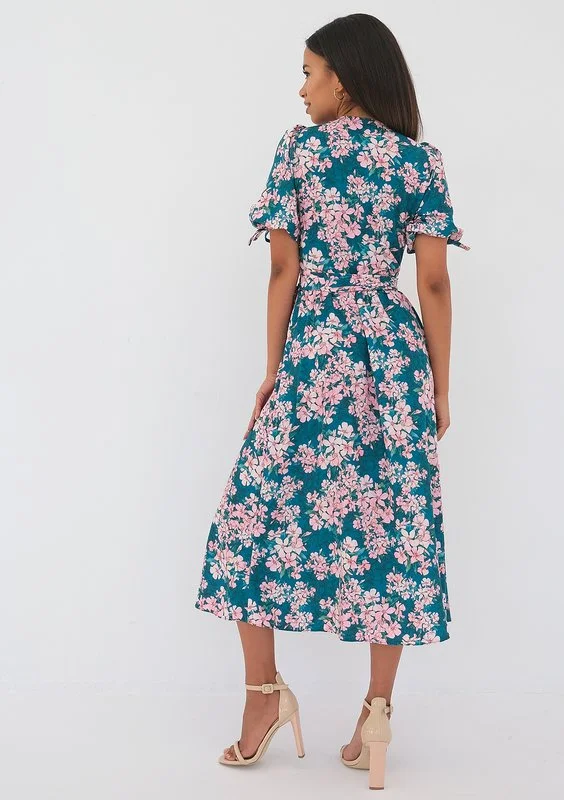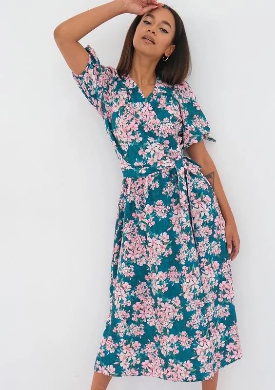 Milly - Kopertowa sukienka w kwiatki Green