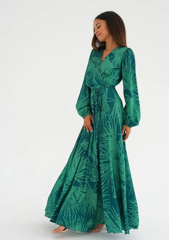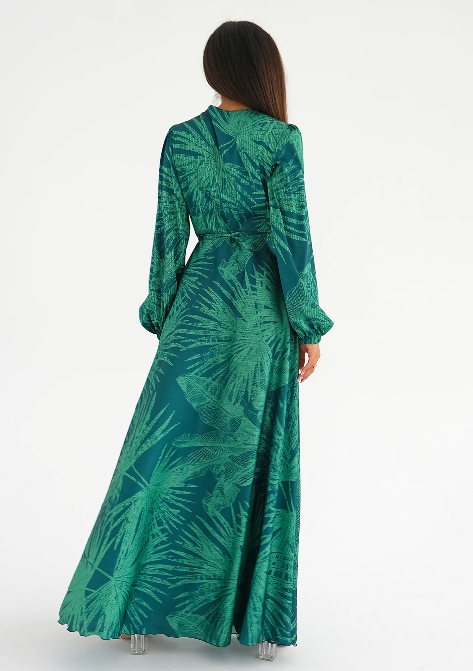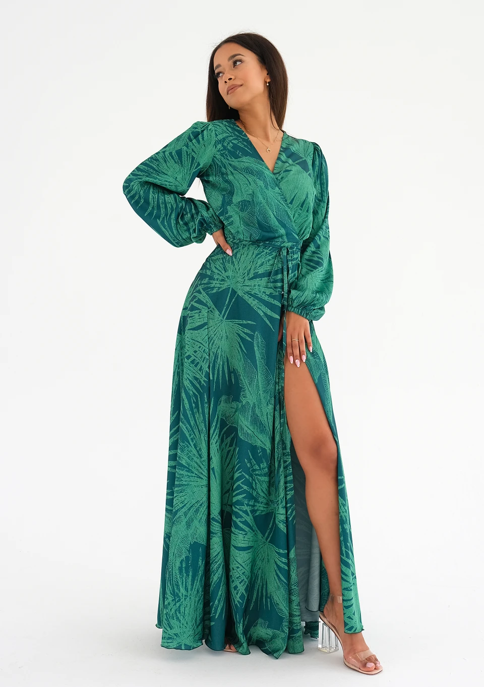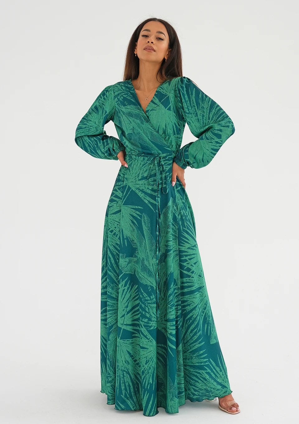 Zoe - Długa sukienka kopertowa Palm Leaves