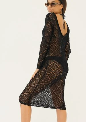 Czarna sukienka plażowa z ażurowej dzianiny to ponadczasowy fason, do którego będziesz wracać w każdym, nowym sezonie. Wyróżnia się bardzo drobnym, subtelnym splotem w romby, a forma jest niezwykle lekka i przewiewna. To sukienka letnia boho, w sam raz do narzucenia na bikini lub lekki top na ramiączkach. Sukienki plażowe o przewiewnej fakturze dzianinowych i ażurowych splotów są dostępne w naszej kolekcji w rozmiarach xs – l. To dopasowane sukienki mini i midi, w klasycznych odcieniach czerni i naturalnej bieli. Mosquito jest rodzimą marką – wybierając ubrania z naszej oferty możesz być pewna świetnej jakości i zaufanego pochodzenia produktów. To polskie sukienki, nie tylko projektowane, ale i szyte lokalnie.
