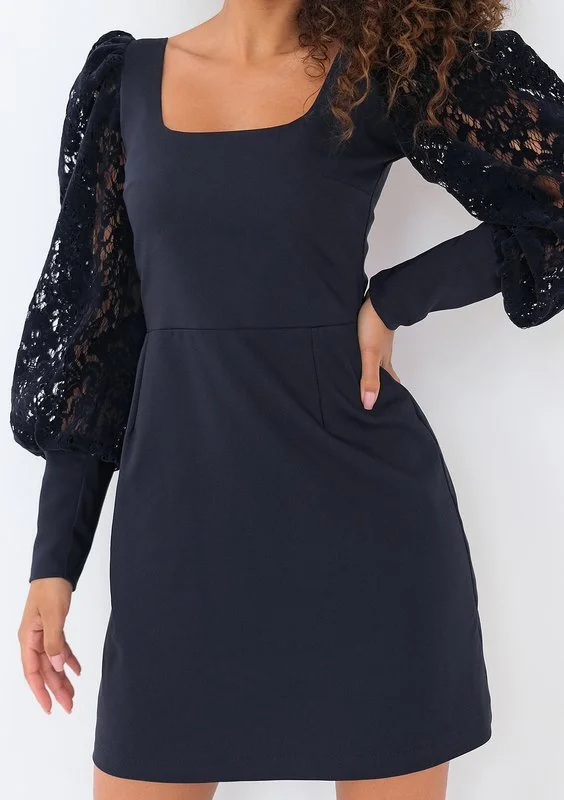Nadine - Sukienka z ażurowym rękawem Granatowa