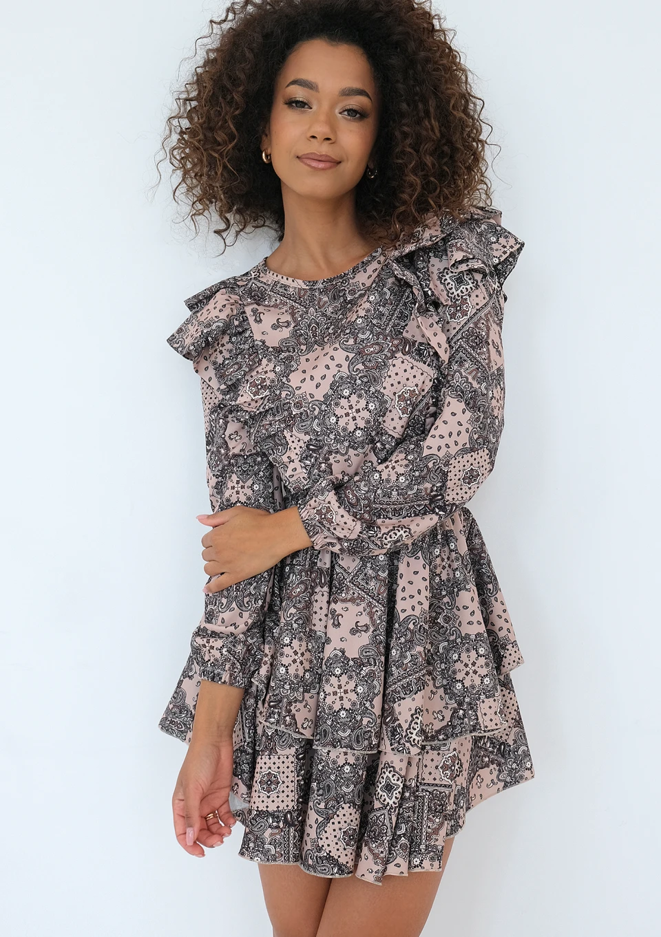 Naomi - Sukienka z falbankami print Nude