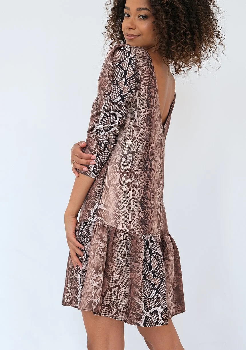 Elegancka sukienka o wygodnym fasonie, ozdobiona falbanką i wężowym motywem. To jesienno - zimowa kreacja, również na czas wczesnej wiosny. Matea to fason o wielu zastosowaniach. Tkanina jest bardzo komfortowa w noszeniu, świetnie się układa, co więcej nie gniecie się. Dzięki właściwościom zastosowanych włókien zachowasz nienaganny, bardzo szykowny wygląd przy oficjalnych okazjach. Prezentowana kreacja sprawdzi się jako sukienka do pracy i ważne spotkania, a także imprezy i uroczystości. Stanowi ciekawy rdzeń casual'owych stylizacji na co dzień.