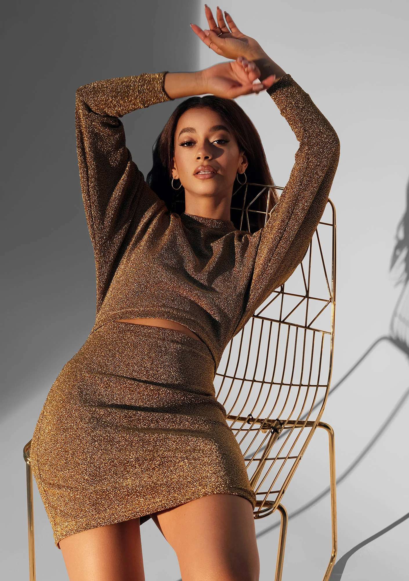 Ta piękna sukienka mini została praktycznie stworzona do tego, aby w nowy rok wkroczyć z wielkim rozmachem, na hucznej i niezapomnianej imprezie. Detal z wycięciem eksponuje te ciężko zrobione mięśnie brzucha podczas kwarantanny, a długość mini podkreśla zgrabne nogi! Wybierz żywy i spektakularny model w złotym kolorze i bądź gwiazdą tego wieczoru.