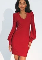 Fason mini, dopasowany, z długim, luźnym rękawem.