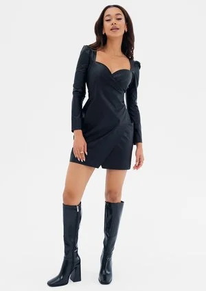 Kleo - Sukienka koktajlowa z imitacji skóry Czarna
