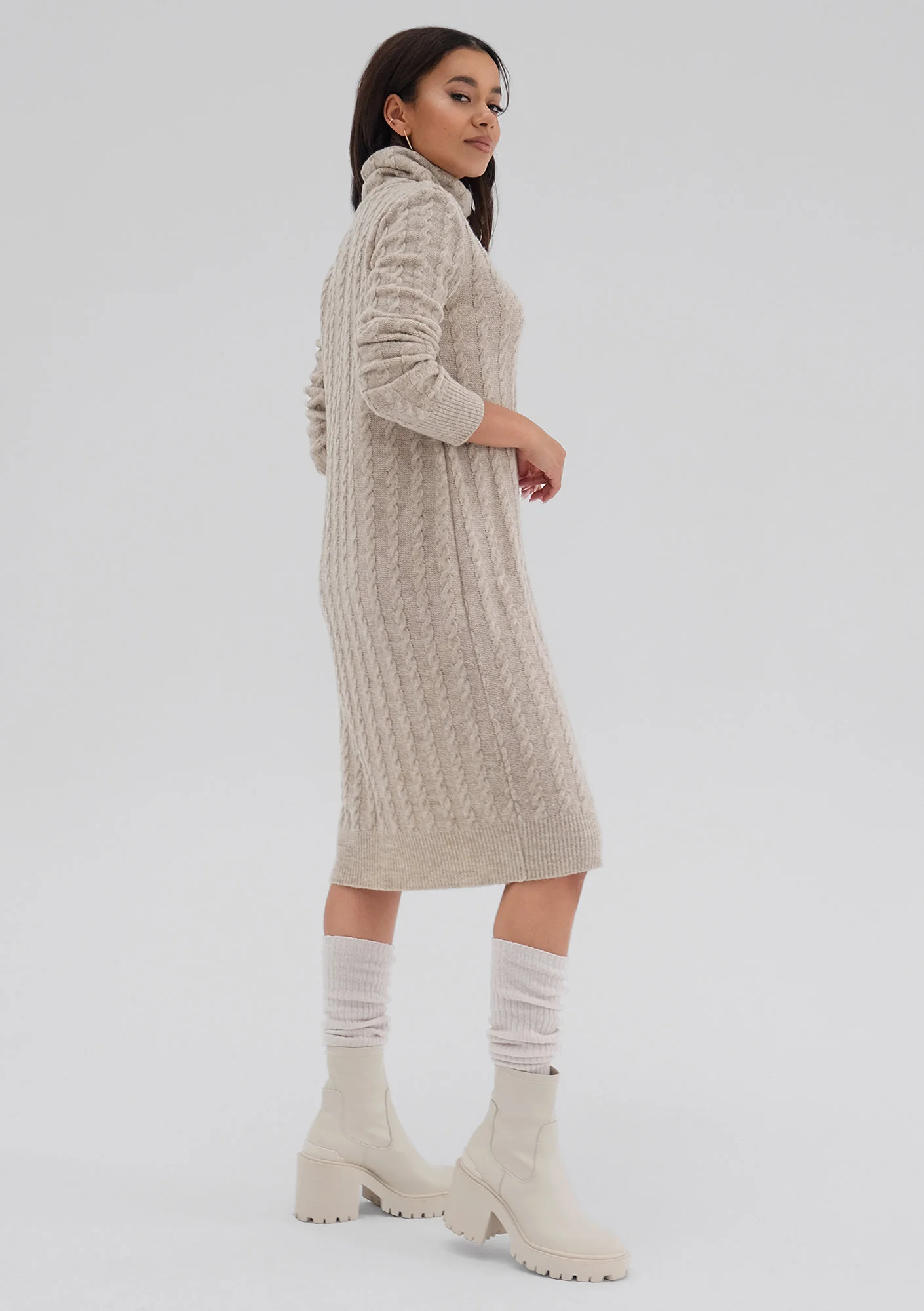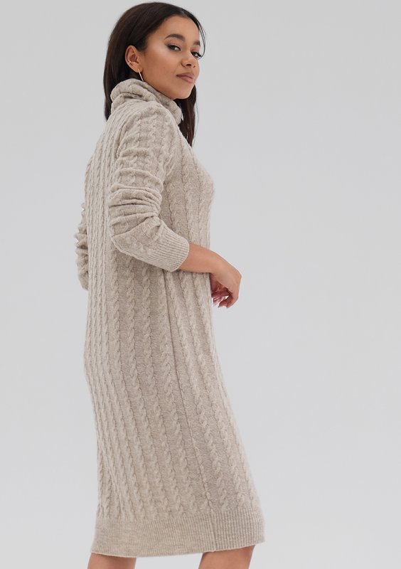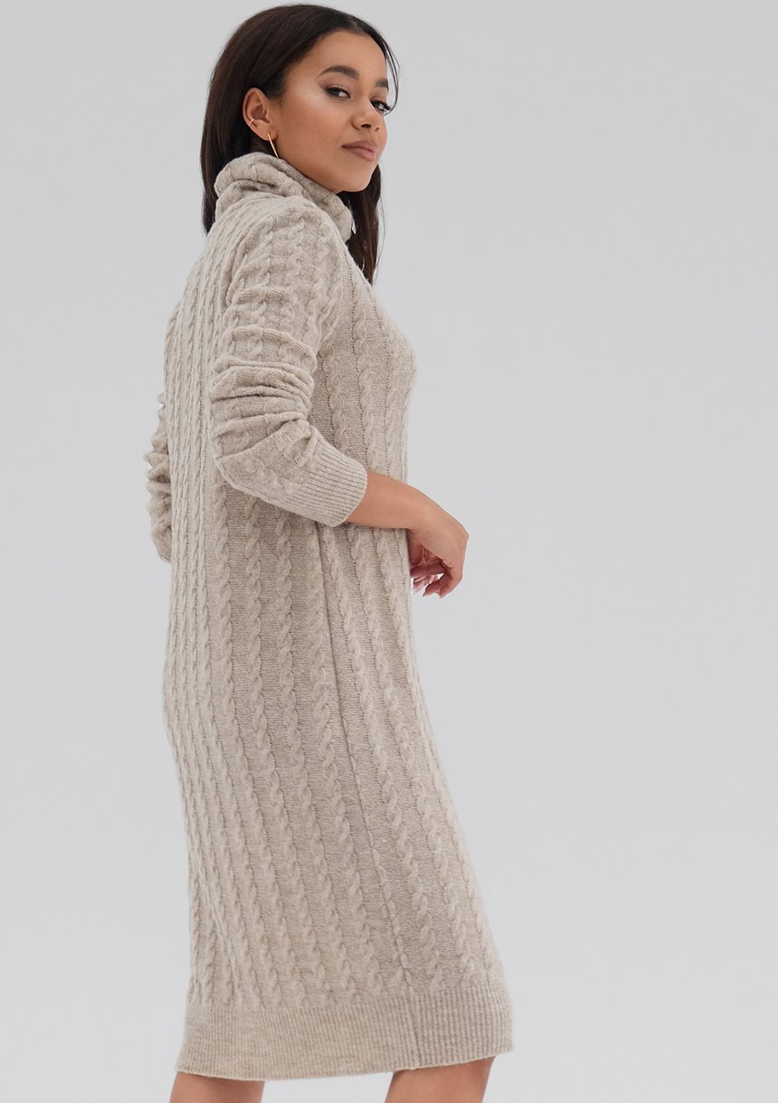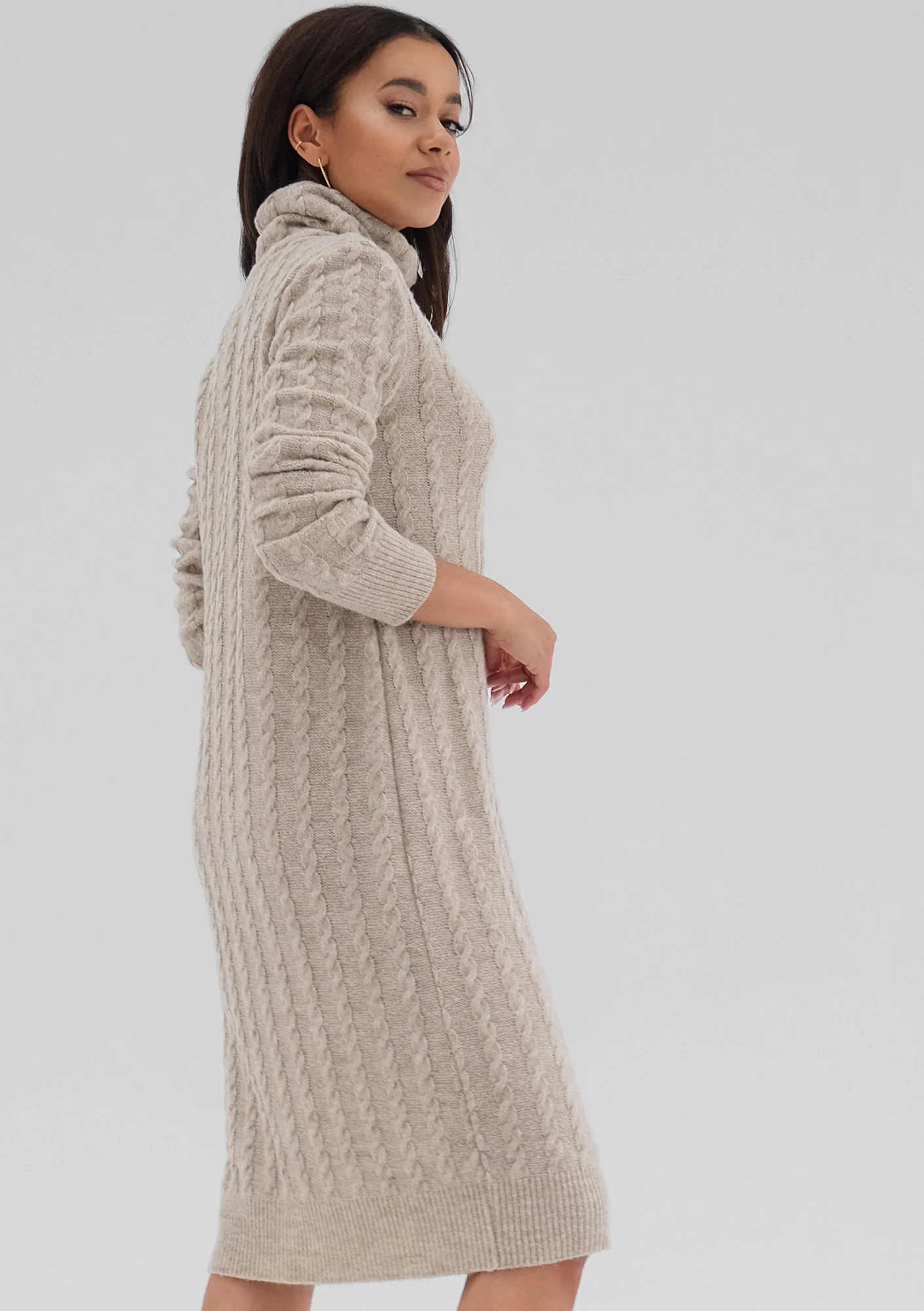 Leya - Sukienka dzianinowa z golfem Beżowa