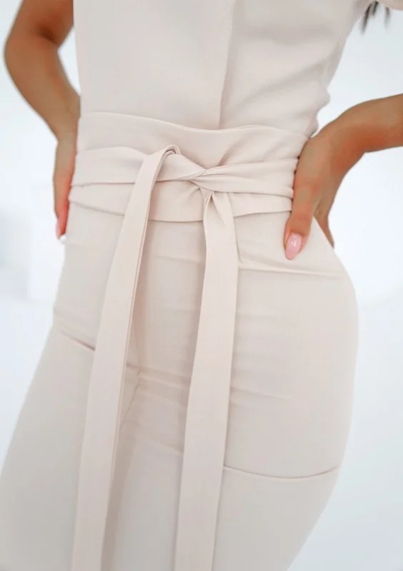 Fason midi, dopasowany. Dodatkowa tasiemka do zawiązania wokół talii.