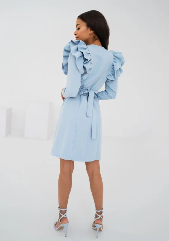 Donata - Kopertowa sukienka z falbanami Błękitna