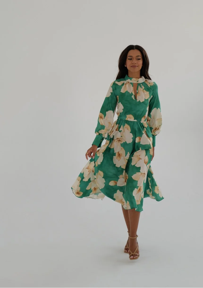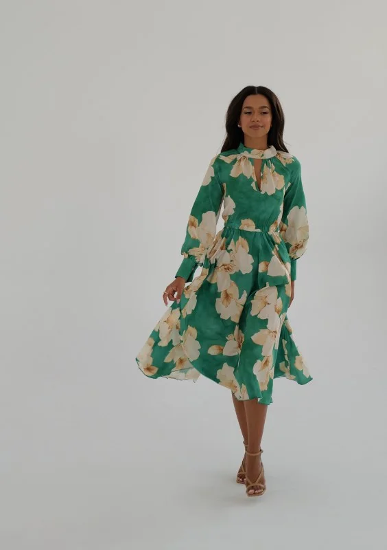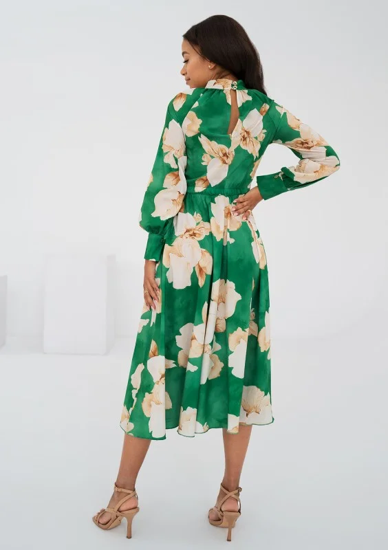 Florence - Koktajlowa sukienka midi w kwiaty Zielona