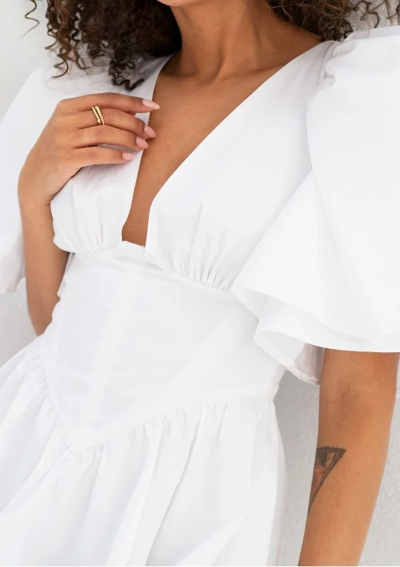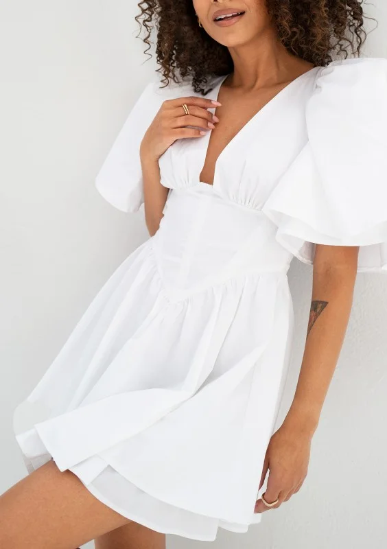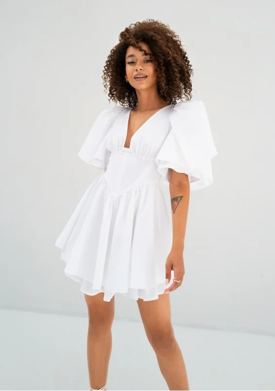 Neyla - Sukienka z gorsetową wstawką i falbanami Biała