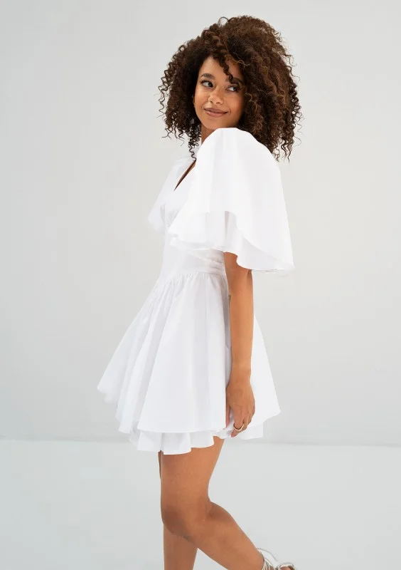 Biała sukienka letnia - wyjątkowa i niepowtarzalna za sprawą efektownych rękawków i gorsetowej wstawki na dekolcie. Ten model zdecydowanie zaskakuje i wymyka się temu, co znajome i powszechne! Rozkloszowana forma dodaje subtelnej lekkości. Sprawi, że będziesz prezentować się świeżo i dziewczęco. Wykonanie z bawełny dodatkowo sprawi, że poczujesz się komfortowo.